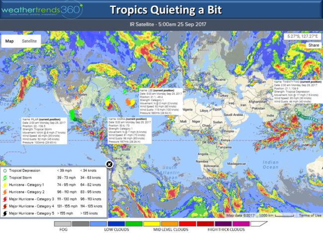 The tropics are showing signs of quieting a bit and both Hurricanes Maria and Lee will remain fish storms until they merge and impact Ireland this weekend. CflipLICK ON IMAGES FOR LARGER VIEW.