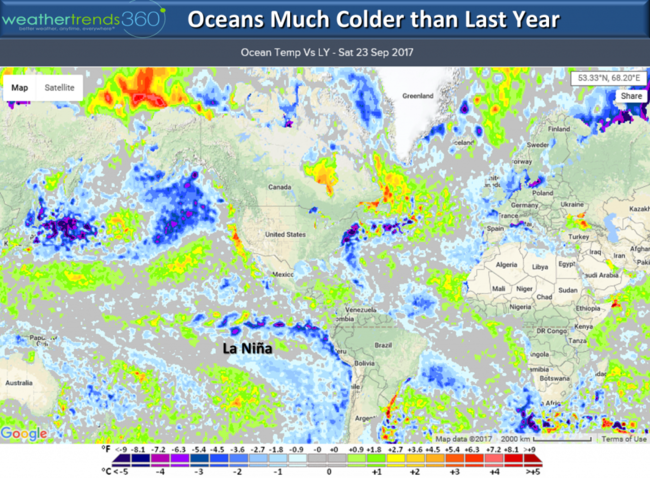 World ocean temperatures are dramatically colder than this time last year and that's a harbinger of things to come for this Winter!