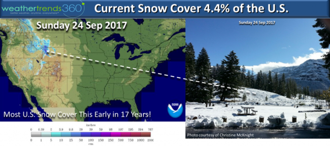Yes they had 1-2 feet of snow on the last day of Summer and first day of Fall in Yellowstone National Park WY! The snow was pretty widespread for this time of year with 4.4% of the U.S. blanketed in snow making it the snowiest start to Fall in 17 years.