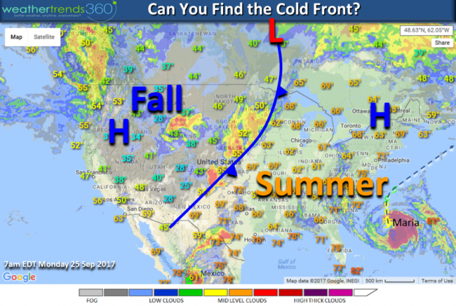 It's not too hard to find the cold front this morning with snow and cold out West and Summer-like temperatures in the East.