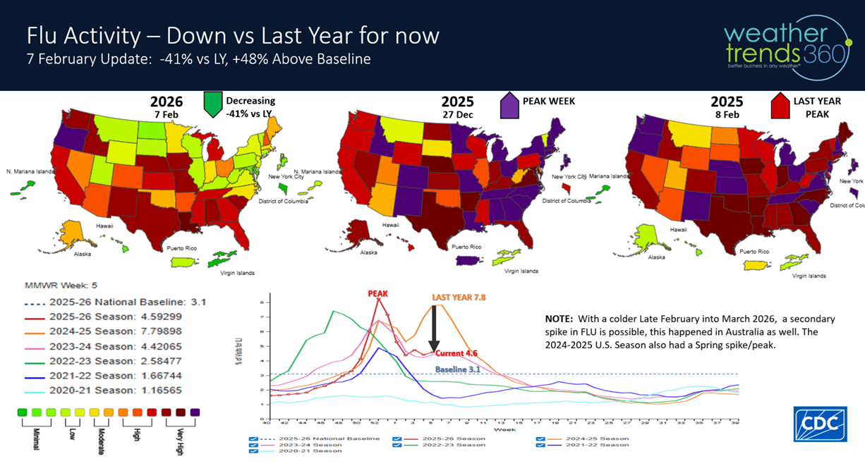FLU and that's trended flat the past few weeks and down a significant -41% vs last year. This could tick up again in March with the colder weather.