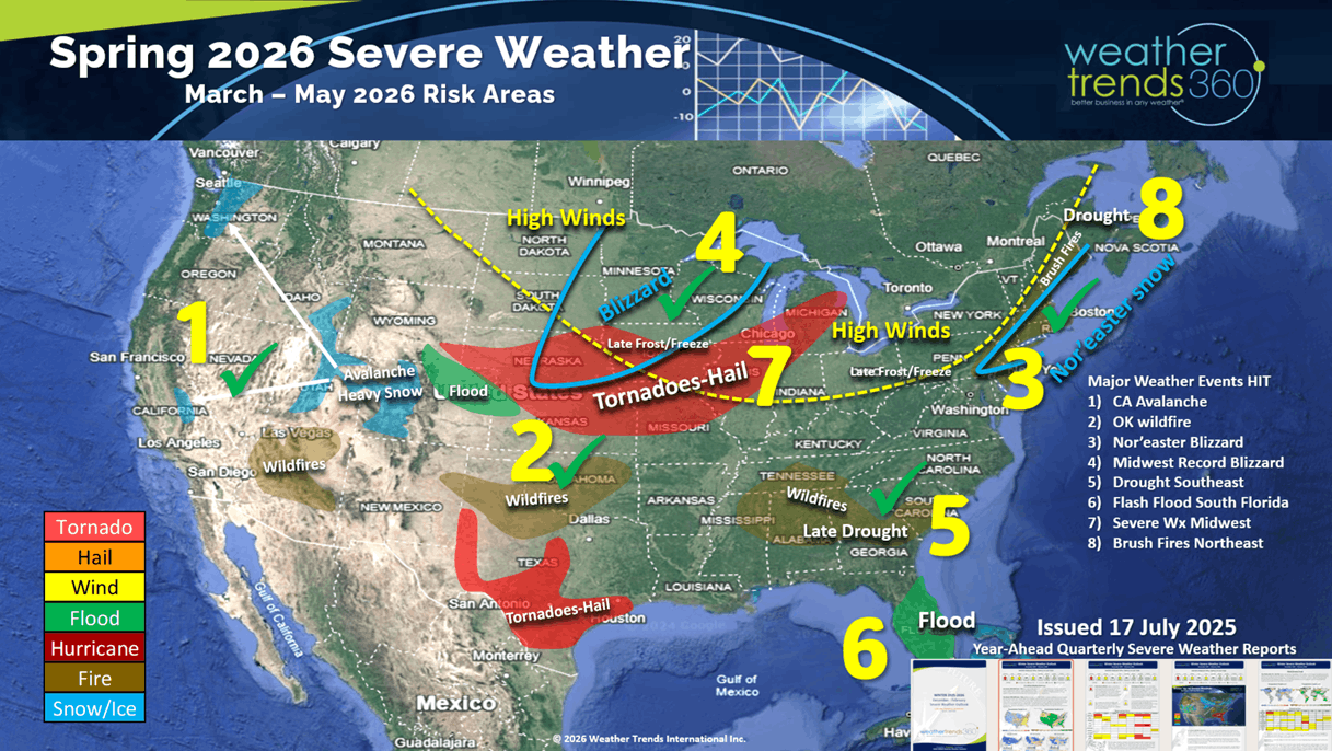 wt360's YEAR-AHEAD Spring 2026 Severe Weather Outlook has been on a roll this year capturing 8 major weather events so far from the avalanche in California, Drought in the Southeast, Blizzard Midwest, Severe Weather Midwest-Lakes, etc.