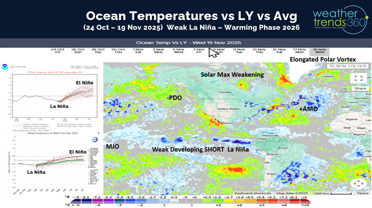 It appears we're headed for a very short weak La Niña start to Winter followed by a warming of the Equatorial Pacific Ocean going into 2026.