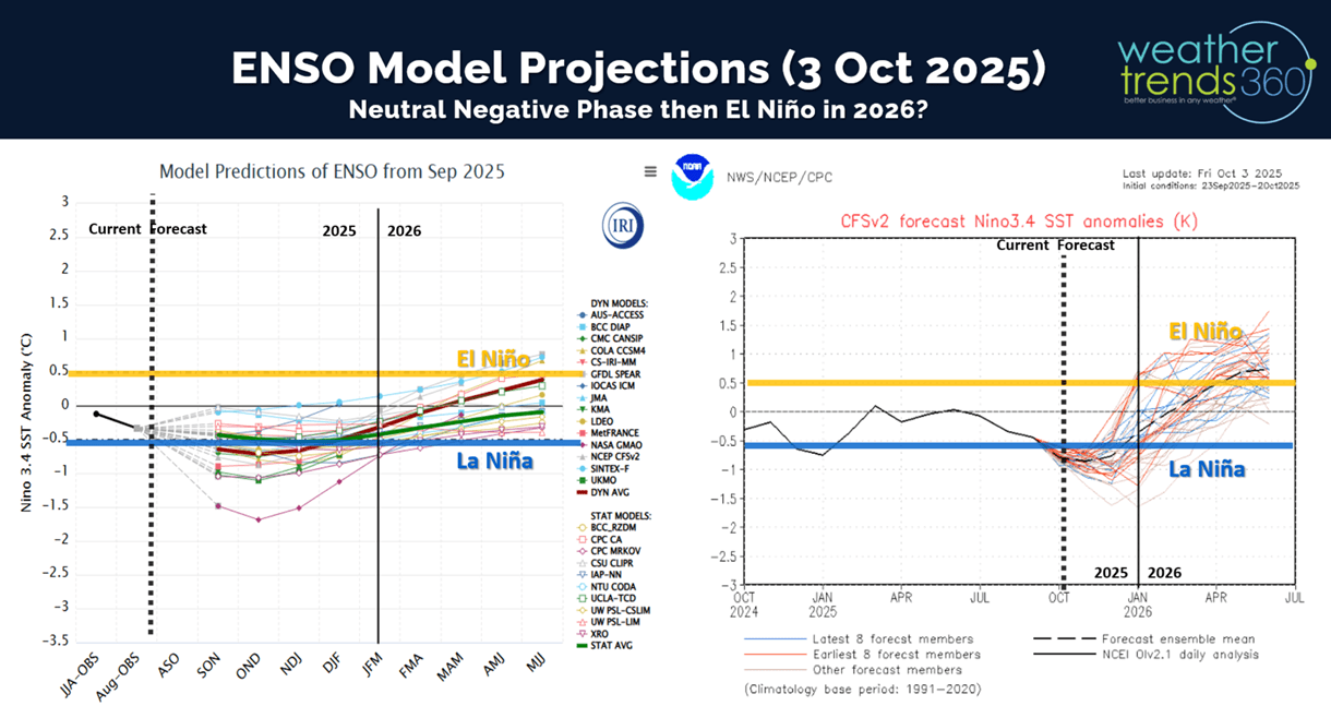 Most models show this brief dip of cooler Equatorial Ocean temperatures and then a rapid warming trend in Spring 2026. In part why
