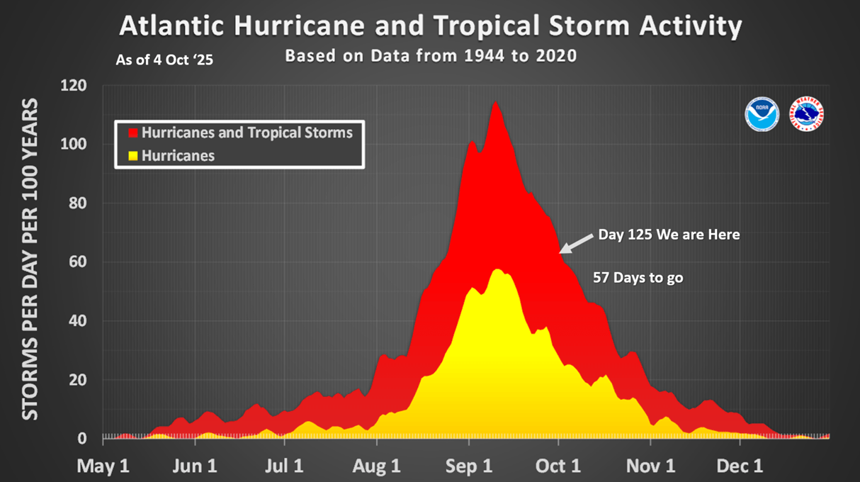 We're in Day 125 of the Hurricane Season with 57 days to go. Several systems have traversed well of the East Coast, but that pattern will continue so the threats of a landfalling hurricane will continue into October, early November.