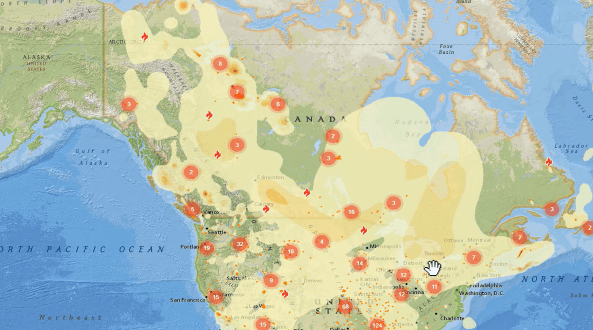 Wildfire smoke from Canada and U.S. fires continues to circulate across parts of the U.S. making for milky hazy skies.