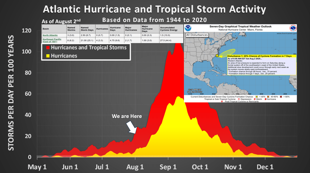 A weak tropical system could develop off the North Carolina coast early this week and head out to sea. We are entering the peak hurricane season from August to October.