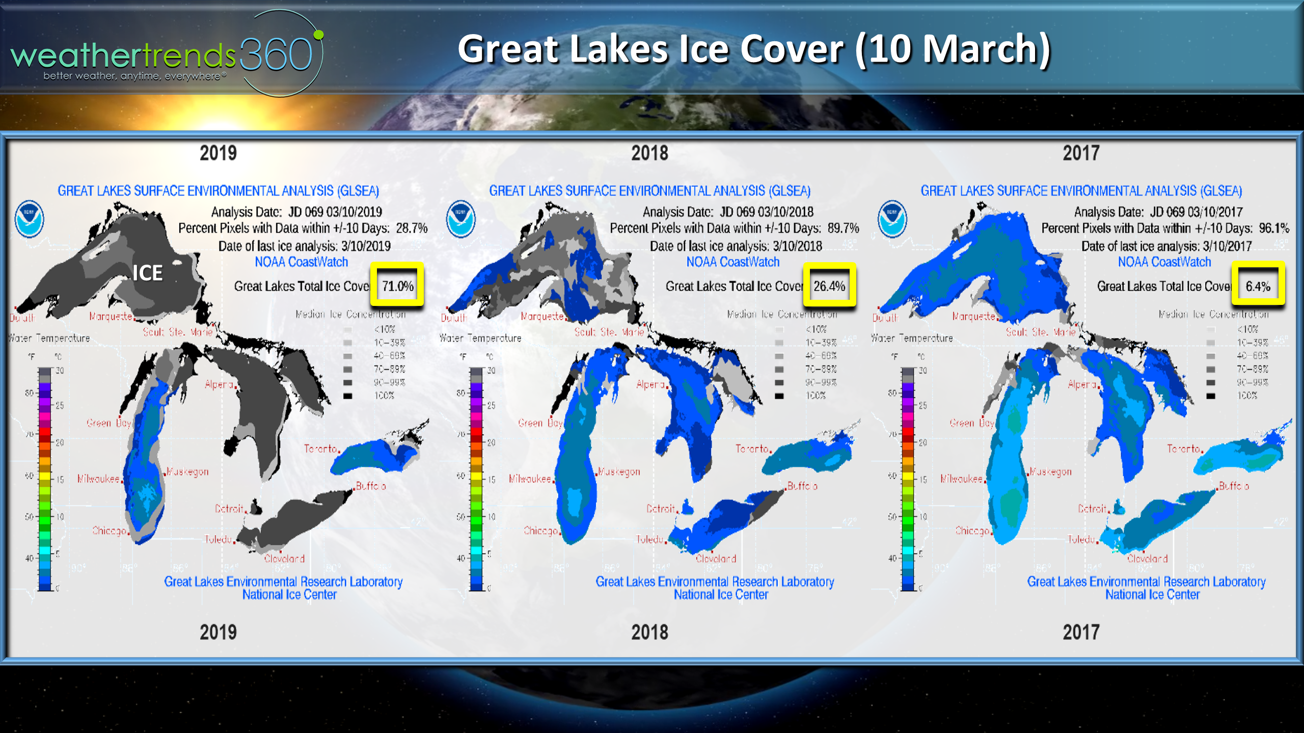 Great Lakes ice cover is very high at 71% coverage compared to only 26% last year and 6% back in 2017. This much ice typically makes for a cold May and risk for a late frost and freeze in the Midwest and Great Lakes. Frequent cold fronts in May and June also suggest a much more active severe weather tornado season as well more similar to 2017 and not as bad as the extreme year of 2011.