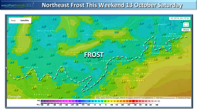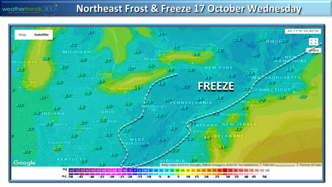 The first FREEZE of the season likely for many areas in the Northeast by the middle of next week.