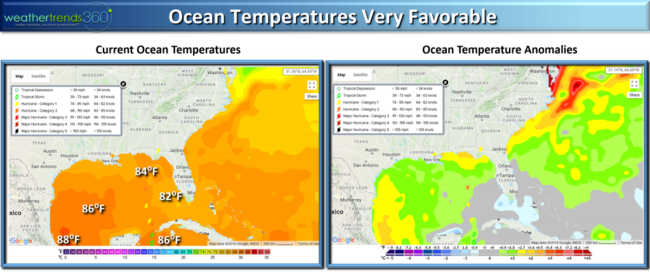 Water temperatures are plenty warm enough in the middle 80s with weakening wind shear for a stronger hurricane. Storm surge will be in the 8-12 feet range with waves on top of that.