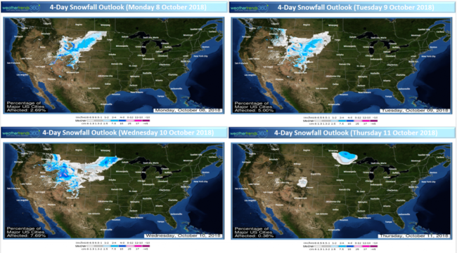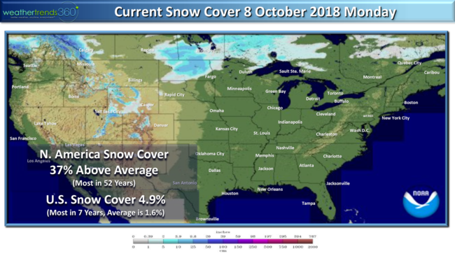In the Western half of the country it's Winter-like with 4.9% of the U.S. already blanketed in snow, that's early. Typically we'd only expect 1.6% snow cover so we're off to a decent start. Looking across North America, snow cover is off the charts trending 37% above average and the most in over 52 years! A sign of things to come for this Winter. Also a lot of early snow in Eastern Siberia so these are all signs of a very cold and snowy Winter in the Eastern half of the U.S.!