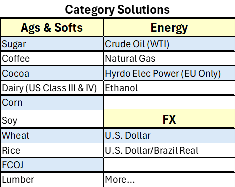 Weather Trends International has developed proprietary short term and YEAR-AHEAD global weather forecasting technology combined with dozens of economic variables to model commodity prices for 16 Ags, Softs, Energy, FX categories, macroeconomic indicators and 100 equities.